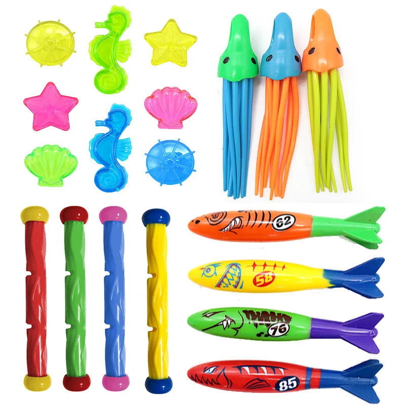 Diving Toys Set Swimming Pool Toys for Kids Diving Sticks Diving Rings Pirate Treasures Fish Toys Octopus Water Swim Bath Toys